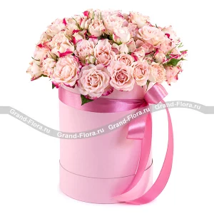 Нежность дня - шляпная коробка с розовыми кустовыми розами