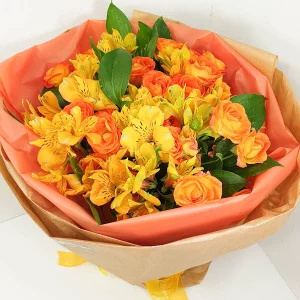 Цветные кружева - букет из оранжевых роз и альстромерий