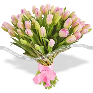 Стандартный: тюльпан розовый - 3 шт., гипсофила - 9 шт., оазис, фетр.